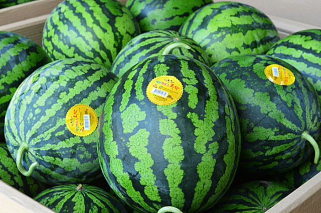 경북 봉화군에는 청량산 재산수박 출하가 한창이다. 재산수박은 해발 400~500m 준고랭지의 마사토에서 재배되어 큰 일교차와 많은 일조량으로 당도가 높고 과육이 단단하며 착색과 저장성이 뛰어나 꾸준히 소비자들의 인지도를 높여가고 있다.