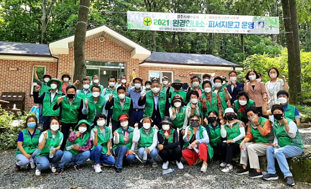 경주시새마을회(회장 손지익)에서는 21일 토함산 휴양림 야영장에서 30도가 넘는 무더위 속에서도 경주시새마을회 회장단과 지도자 50여명이 모인 가운데, 환경안내소 및 피서지 이동문고 개소식을 가졌다.