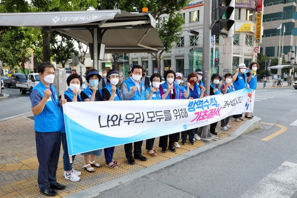 한국자유총연맹중구지회(회장 이금선)는 22일 오전 삼덕네거리 인근(경대병원역)에서 회원 20명이 참석한 가운데 ‘방역수칙 및 기초질서지키기 캠페인’을 실시했다.