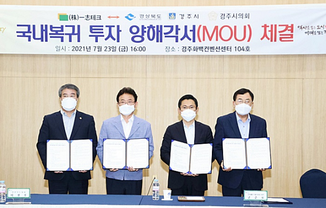 경주시와 시의회, 경북도는 지난 23일 경주화백컨벤션센터에서 일지테크와 투자금액 815억 원, 고용 창출 50명 등을 골자로 하는 국내복귀 투자양해각서를 체결했다.