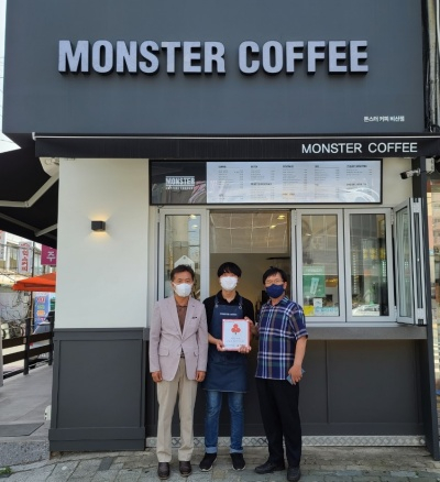| ↑↑ 서구 '몬스터 커피 비산점'에 착한가게 현판 전달 |