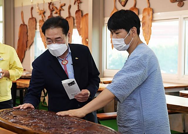 영천시(시장 최기문)는 26일 영천시 북안면에서 활동하는 대한민국 전통미세목조각 권순조 명장의 공방(새벽공예)을 방문하여 지역 내에서 활동하는 조각인을 격려하고 애로사항과 의견 등을 청취하며 현장 목소리에 귀를 기울였다.