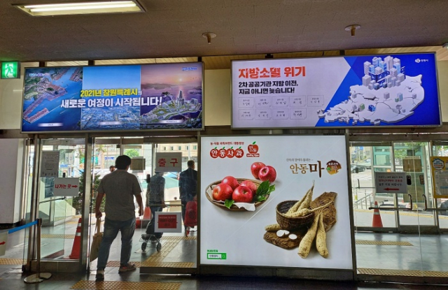 상주시(시장 강영석)는 창원시 등 비수도권 9개 도시와 공동으로 2차 공공기관 지방 이전을 촉구하는 광고물을 7월 23일 서울남부터미널에 설치했다. 광고물은 지방 소멸을 막을 수 있도록 2차 공공기관 지방 이전을 조속히 추진해 달라는 메시지를 정부와 국민에게 알리고 있다. 광고물은 올 연말까지 게시된다.