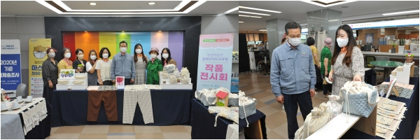 방석, 쿠션, 가방, 앞치마, 슬리퍼 등 패브릭 소재의 다양한 소품들로 구청 민원실을 찾는 주민들에게 편안함을 안겨줄 이번 작품전시회는 30일까지 운영된다.