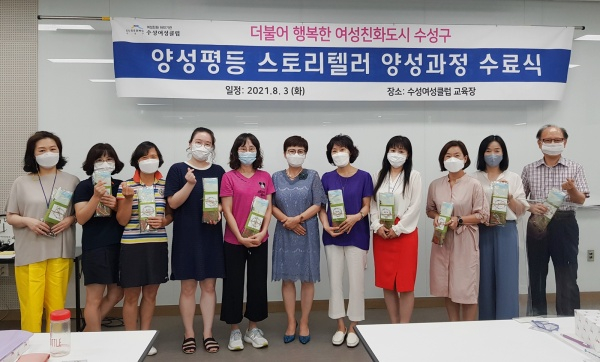 대구 수성구(구청장 김대권)는 지난 3일 수성여성클럽에서 ‘2021년 양성평등 스토리텔러 양성 교육 과정’ 수료식을 개최했다.