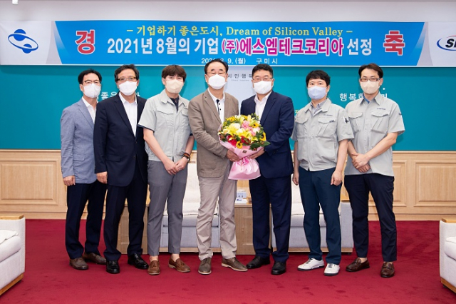 구미시(시장 장세용)는 8월9일(월) 오전 9시 시청 게양대에서 ㈜에스엠테크코리아(대표 모동환) 임직원과 시청 직원이 참석한 가운데 회사기 게양식을 가졌다.