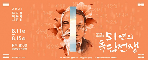 2021 뮤지컬 이육사가 대한민국 독립운동의 성지인 안동의 애국지사들을 재조명한다. 8월 11일(수)부터 15일(일)까지 총 5일간 매일 저녁 8시부터 안동탈춤공연장에서 <2021 뮤지컬 이육사 시즌Ⅱ 『51년의 독립전쟁』-석주에서 육사까지->가 펼쳐진다.