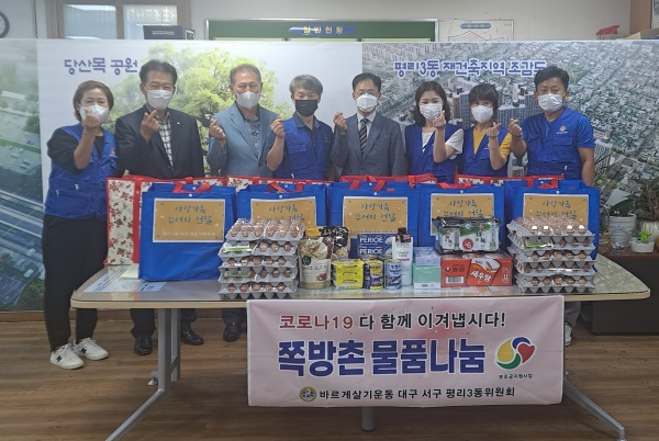 대구 서구 평리3동 바르게살기위원회(위원장 한영준)는 폭염에 취약한 저소득 독거어르신들에게 ‘건강한 여름나기 사랑가득 희망나눔 생필품꾸러미’를 전달했다.
