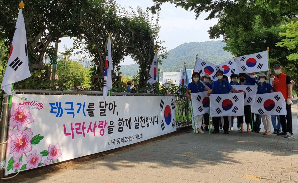 대구 달서구 이곡1동(동장 권영철)은 바르게살기위원회(위원장 장준선)와 한국자유총연맹(회장 신보경)이 지난 12일 오전 광복 제76주년을 맞아 공원, 도서관 등에 태극기 거리를 조성했다고 밝혔다.