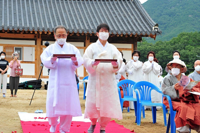 육법공양과 삼귀의, 종사영반으로 시작된 다례재는 은해사 조실 중화 법타 큰스님을 비롯해 인각사 호암스님, 김영만 군위군수, 심 칠 군위군의회 의장, 박창석 도의원과 군의원 등 50여 명이 참석한 가운데 열렸다. 코로나 19 감염병 예방을 위해 참여 인원을 최소화 하고 방역수칙을 철저히 지켜 행사를 진행했다.