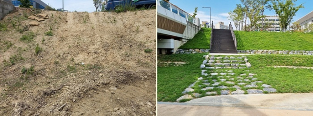 | ↑↑ 도서관-호수공원 시공전(좌) 시공후(우) |