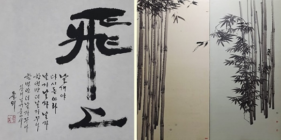 | ↑↑ 좌로부터 김두영作 문둥이, 우승우作 대숲가는길 |