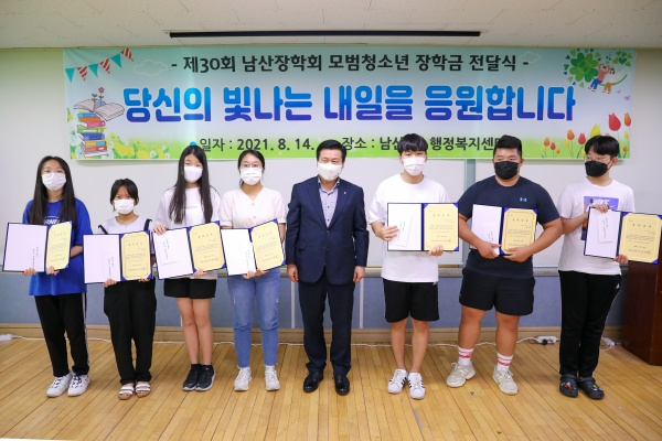 지난 1994년 이후 매년 관내 청소년에게 장학금을 지속적으로 전달하고 있는 남산장학회는 올해까지 총 368명의 청소년에게 1억3천295만 원을 전달했다.