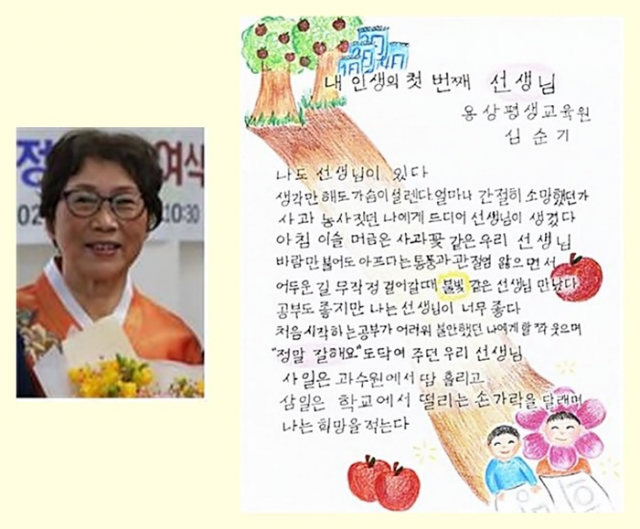 안동시는‘2021년 전국 성인문해교육 시화전'에서 안동시용상평생교육원에 다니는 심순기(여·69) 학생이 시화부문에서 최우수상을 수상했다고 밝혔다.