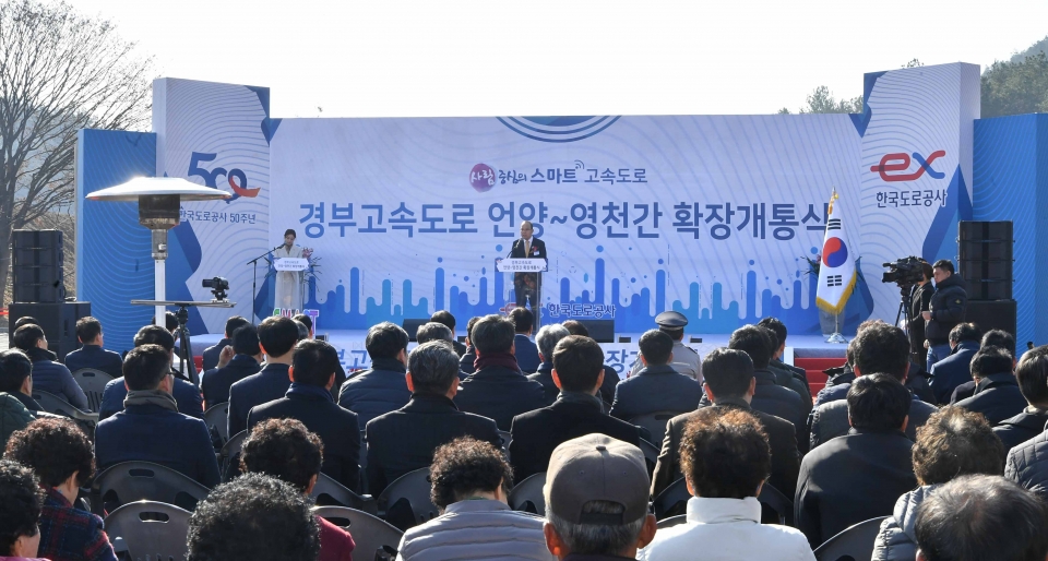 윤종진 경북도 행정부지사는 “경부고속도로 언양~영천간 구간은 선형이 불량하고 교량 등 구조물이 노후되어 교통사고가 빈번히 발생한 구간으로 시설개선이 지속적으로 요구되는 등 기존 4차로로서는 교통량이 한계점에 다다른 구간이었다”며 "6차로 확장?개통으로 교통사고의 위험이 크게 줄어들고, 도내 지역균형개발과 동남부지역의 도청신도시 접근성이 향상될 것으로 기대된다”고 말했다. 아울러, “앞으로도 신도청 시대 경북의 사통팔달 전(田)자형 고속도로, 철도 등 교통망 구축을 위해 도내 주요 SOC건설사업을 지속적으로 추진해 나갈 계획”이라고 밝혔다.