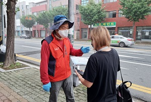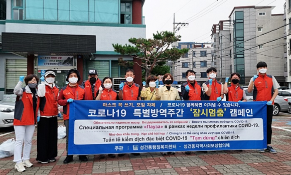 경주시 성건동 행정복지센터(동장 남미경)는 20일 오전, 성건동 지역사회보장협의체(공동위원장 남미경, 이우일) 회원들과 함께 관내 외국인을 대상으로 경주시 특별방역주간 ‘잠시 멈춤’ 캠페인을 실시했다.