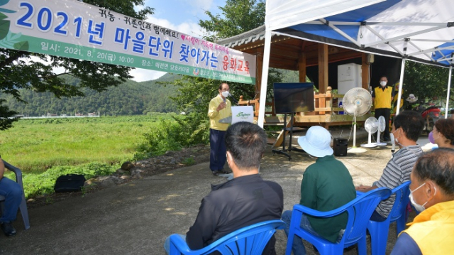 이날 사)청도군귀농귀촌연합회는 사회적거리두기를 준수하면서 농촌살아보기 도시민 참여자와 귀농귀촌인·당호리 지역주민 30여명이 모인 가운데 정운진 강사가 지역주민들과 화합하고, 서로 존중해주며 더불어 살아가는 방안에 대한 내용으로 융화교육을 진행했다.