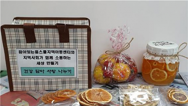 “나눔~청, 감사~청”사업은 지역의 아동들이, 관내 어르신들께 선물하기 위해 직접 과일청과 야채를 말려 포장해 전달하는 사업이다.