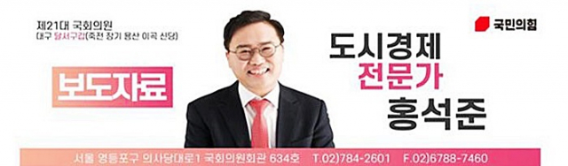 홍석준 의원(국민의힘, 대구 달서구갑)이 팔공산 도립공원의 국립공원 승격이 재추진되고 있는 것에 대하여 환영의 뜻을 밝혔다. 답보상태에 있던 ‘팔공산 국립공원 승격 재추진’은 홍석준 의원이 대구광역시와 환경부, 국립공원공단과의 협의에서 이루어낸 성과이다.