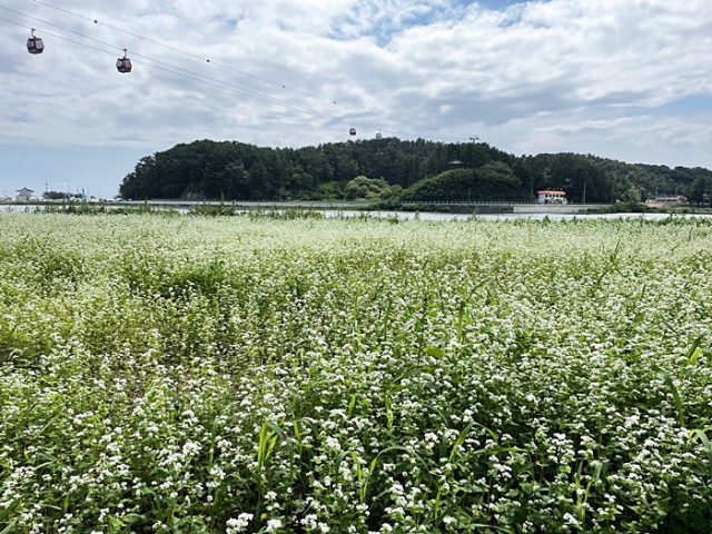 또한 왕피천 생태공원의 메밀꽃 군락지는 마치 무더운 여름에 눈이 내리는 듯한 화려한 모습으로, 특히 케이블카를 타고 위에서 내려 본 풍경은 감탄을 자아낸다.
