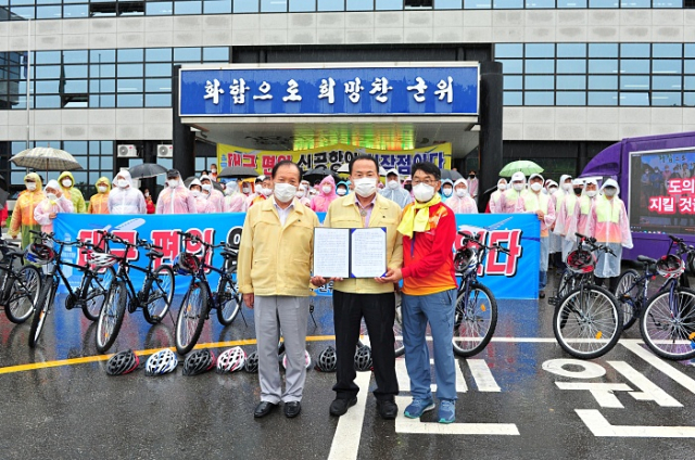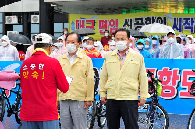 이와 관련하여 군위군 통합신공항추진 위원회(회장 박한배)는 지난 8월 10일 경상북도의원들에게 군위군의 대구편입에 협조를 요청하는 서한문을 보냈다. 그러나 언론을 통해서 들려오는 편입에 대한 일부 도의원들의 회의적인 입장에 8월 23일 8시 30분 소보면 추진위원들을 시작으로 읍면 릴레이 자전거 행진을 하였다. 행사에 참여한 읍면 위원장들은 호소문을 통해 군위군의 대구편입이 약속대로 신속하게 추진할 것을 호소했다.
