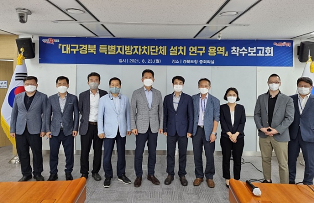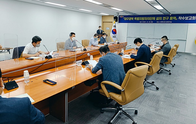 경상북도(도지사 이철우)는 대구시와 공동으로 23일 오후 도청에서‘(가칭)대구경북 특별지방자치단체 설치방안 연구 용역’과 관련해 과업내용의 범위, 추진 일정, 시도의 정책 방향 등을 조율하는 착수보고회를 개최했다.