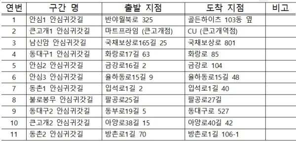한편 대구 동구에 조성된 안심귀갓길은 다음과 같다.