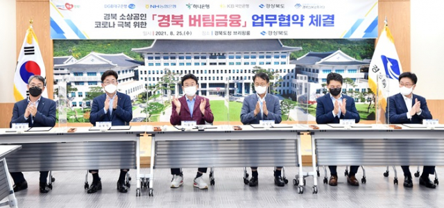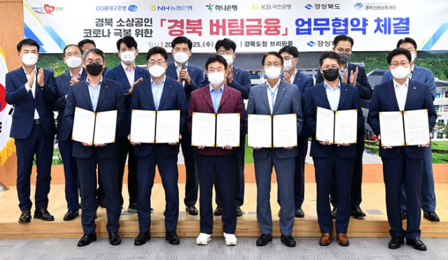 경상북도는 25일 오후 도청에서 대구은행, 농협은행, 하나은행, 국민은행과 경상북도·경북신용보증재단 간의 지역 소상공인 코로나 위기 극복을 위한 ‘경북 버팀금융 업무협약’을 체결했다고 밝혔다.
