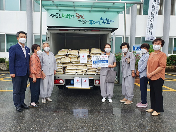 봉화군(군수 엄태항)은 소천면 분천리에 위치한 약수암(주지 해담스님)이 지난 8월 24일 소천면사무소를 방문하여 지역사회 어려운 이웃을 위해 사랑의 쌀 10kg 80포(200만원 상당)를 봉화군에 지정 기탁했다고 밝혔다.