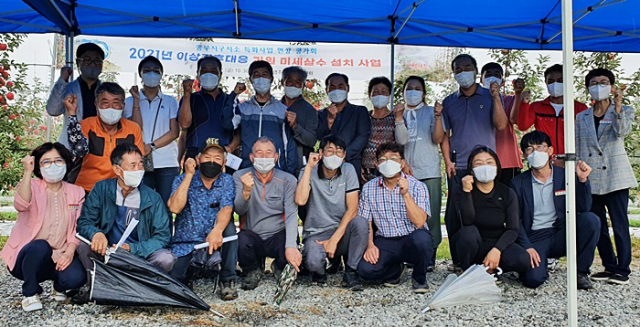 미세살수 장치는 나무 위쪽에서 안개처럼 미세하게 물을 뿌려 과수원내 온도를 7~10℃ 정도 낮추는 효과가 있어 이상저온·고온 피해를 방지한다.