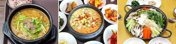 | ↑↑ 으뜸음식점 (좌로부터) 경북제일추어탕, 산동네청국장, 황토담 |