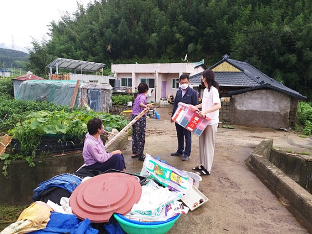 이에 문무대왕면은 경주시청 노인복지과에 긴급지원을 요청해 담요와 세면도구 등이 들어있는 응급 구호세트를 받아, 피해를 입은 수재민 10여 가구에 신속히 전달했다.