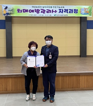 상주시농업기술센터(소장 최낙두)는 8월 27일 기술센터 대강당에서 여성 농업인 일자리 창출 전문 기능교육의 일환으로 진행된 치매예방관리사 자격과정 종강식을 개최했다.
