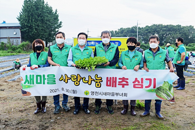 영천시새마을부녀회(회장 최분순)는 지난 30일 금호읍 덕성리 20-4번지 일대(745평) 농장에서 새마을 회원 30여 명과 최기문 영천시장 등이 참여한 가운데 ‘사랑의 김장 담가주기’ 행사에 사용할 배추 심기 작업을 실시했다.