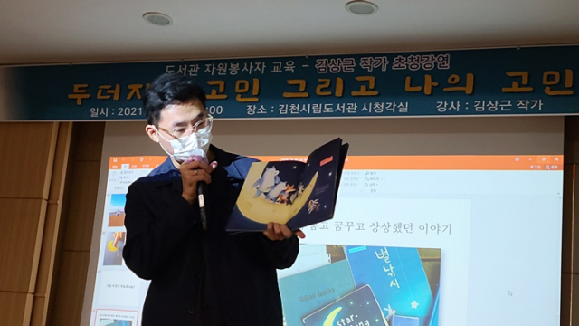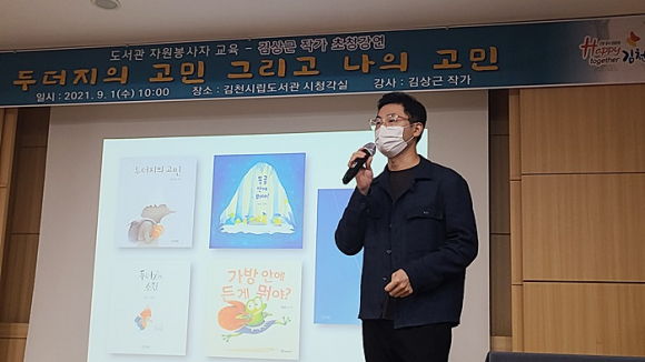 김천시(시장 김충섭)에서는 9월 독서의 달을 알리는 첫 행사로, 도서관 자원봉사자들을 대상으로 ‘두더지의 고민’의 저자 김상근 작가를 초청하여 강연회를 개최했다.