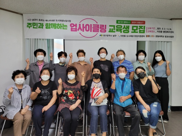 대구광역시 남구청(구청장 조재구)이 주최하고 이천동 도시재생 현장지원센터와 경일대학교 LINK+사업단이 공동으로 주관하는 ‘이천동 주민과 함께하는 업사이클링 교육’이 지난 3일 이천동 행정복지센터에서 개강했다.