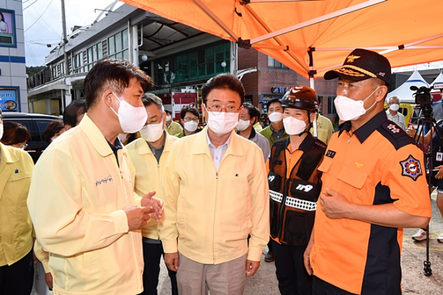 이 본부장은 오후 1시 30분경, 현장에 마련된 회의장에서 피해상인 대표단과 이희진 영덕군수, 강성조 행정부지사, 김중권 경북도 재난안전실장, 영덕소방서장 등 관계자들과 대책회의를 가졌다.