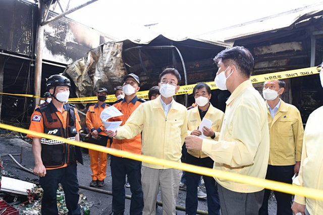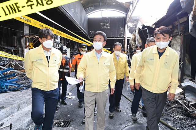 이철우 경북도지사는 긴급히 화재현장을 방문해 피해현장을 세밀히 둘러 본 후“모든 행정력을 동원해 하루 빨리 생업으로 돌아갈 수 있도록 최대한 지원하도록 할 것”이라며 피해 상인들을 위로했다.