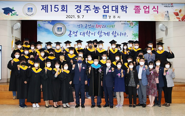 경주시가 지역 농업발전과 농업전문인력을 육성하기 위해 설립한 경주농업대학의 제15기 졸업식이 7일 오후 2시 경주시농업기술센터 청사 내 농업인회관에서 열렸다.