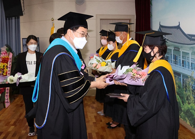 이날 졸업식은 2021년 학사보고, 성적우수상과 졸업증서 수여 및 시상, 농업대학 활동 동영상 시청 등의 순으로 진행됐다.