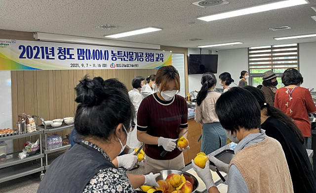 청도군(군수 이승율)은 지난 7일 농산물종합가공센터에서 농산물 가공 창업을 희망하는 여성인 25명을 대상으로 “청도 맘(MOM) 농특산물가공 창업 교육” 개강식을 개최했다.