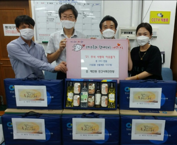 | ↑↑ 해안동 민간사회안전망, 추석맞이 후원품 전달 |