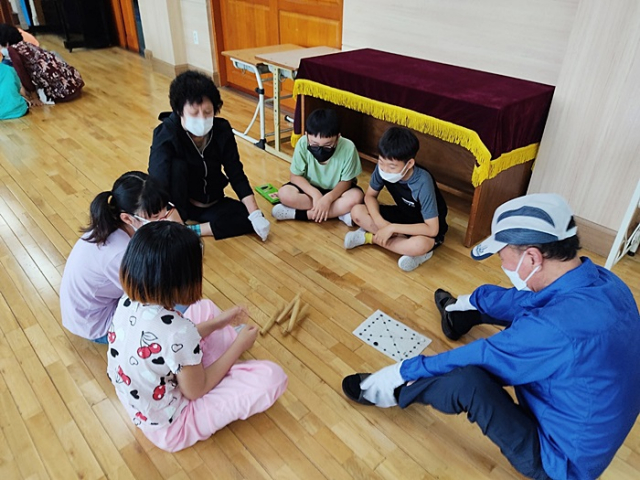 | ↑↑ 서대구초 강당에서 어르신과 아이들이 윷놀이는 하는 모습 |