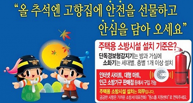 이번 홍보는 ‘고향 집에 안전을 선물하고 안심을 담아오자’는 내용으로 시민에게 고향 집에 소화기와 단독경보형감지기를 설치하자는 의미를 담았다.
