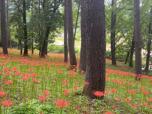 꽃을 피고 진 후 잎이 나오기 시작해 이루어질 수 없는 사랑이라는 꽃말을 가지고 있는 꽃무릇이 초록의 숲 사이로 붉은 꽃을 피우며 가을을 알리고 있다.