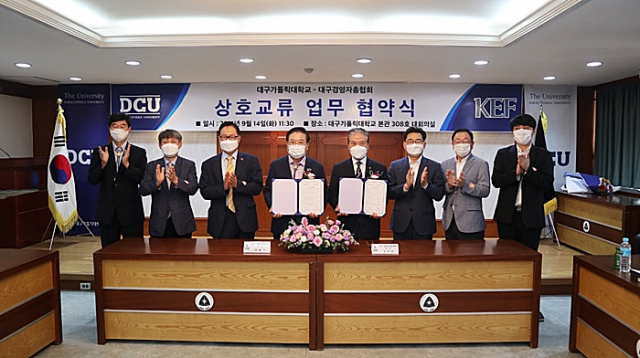 대구가톨릭대(총장 우동기)와 대구경영자총협회(회장 김인남)는 9월 14일 대구가톨릭대 본관에서 상호교류 협약을 체결했다.
