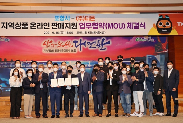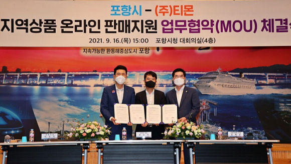 포항시는 16일 포항시청 대회의실에서 한국 최초의 소셜커머스 기업인 ㈜티몬과 업무협약(MOU)를 체결하고 포항시 지역상품 온라인 판매지원을 위한 상호협력을 약속했다.