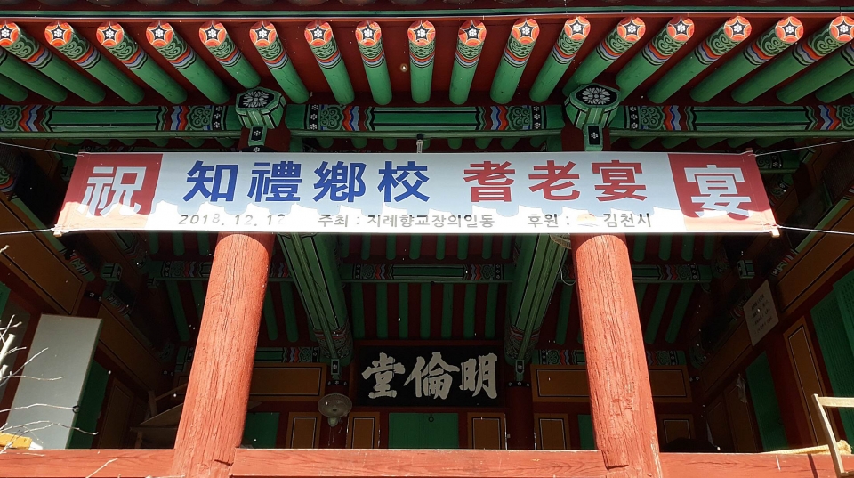 지례향교(전교 김상규)에서는 지난 12일 11시에 지역민이 참석한 가운데 2018년 기로연(耆老宴)행사를 가졌다.