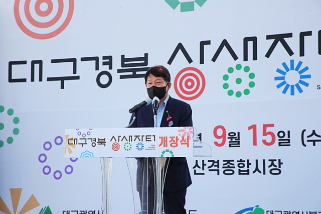 ↑↑ 대구경북 상생장터개장 축하인사말을 전하는 권영진대구시장