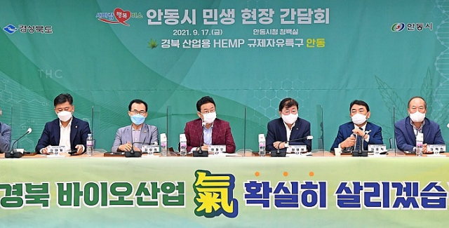 이날 간담회에는 권영세 안동시장, 지역의 헴프산업 기업인과 기관‧사회단체장 등 40여명이 함께해 백신과 헴프(대마)산업 등 바이오산업 현장의 어려움을 살피고 해결방안을 고민했다.